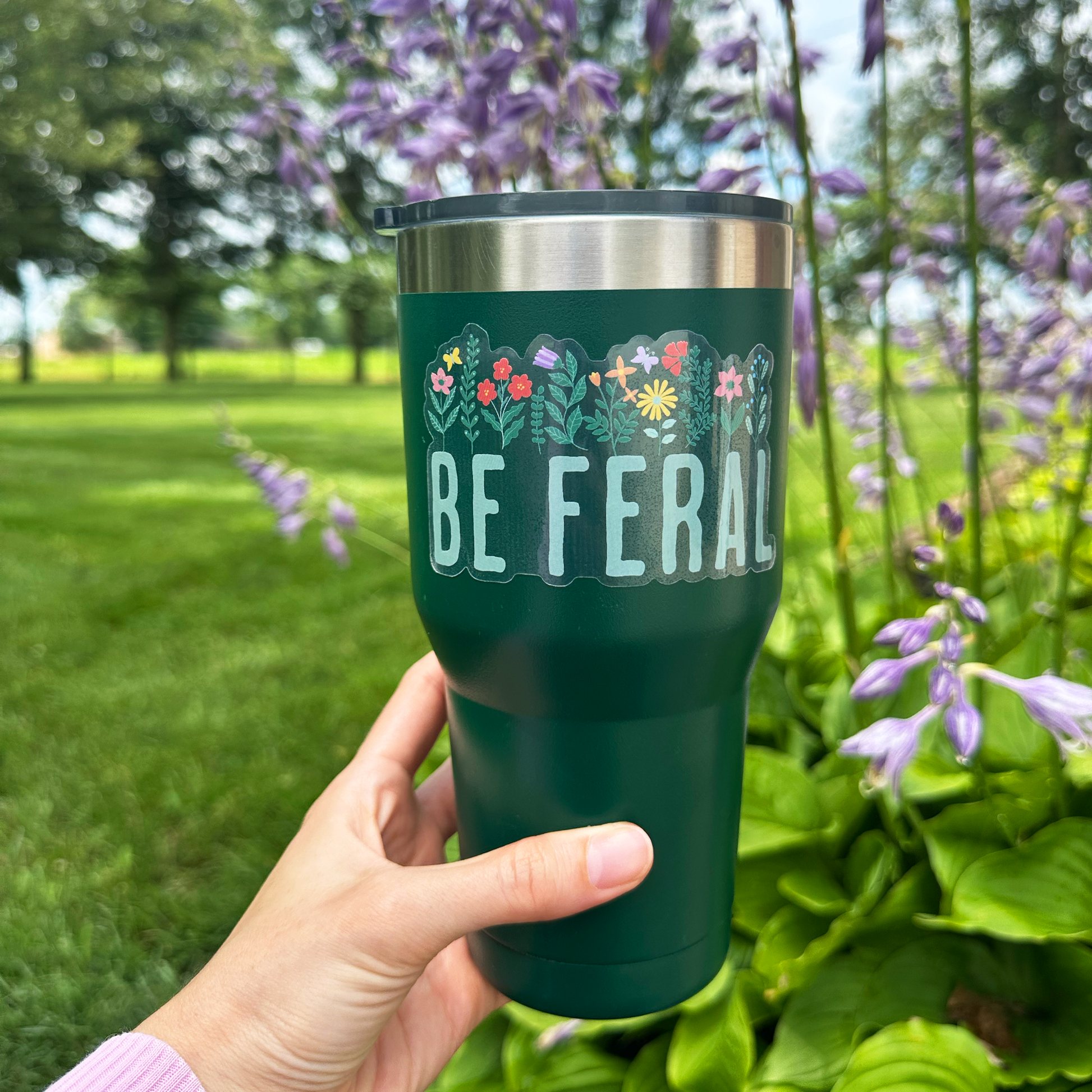 🌿 Unleash your inner wildflower with this “Be Feral” transparent vinyl sticker! Perfect for water bottles, laptops, journals, phone cases, or anywhere you want a little bit of cottagecore magic and feral energy. Featuring a playful botanical design with colorful wildflowers and bold lettering, this aesthetic sticker is both cute and empowering.