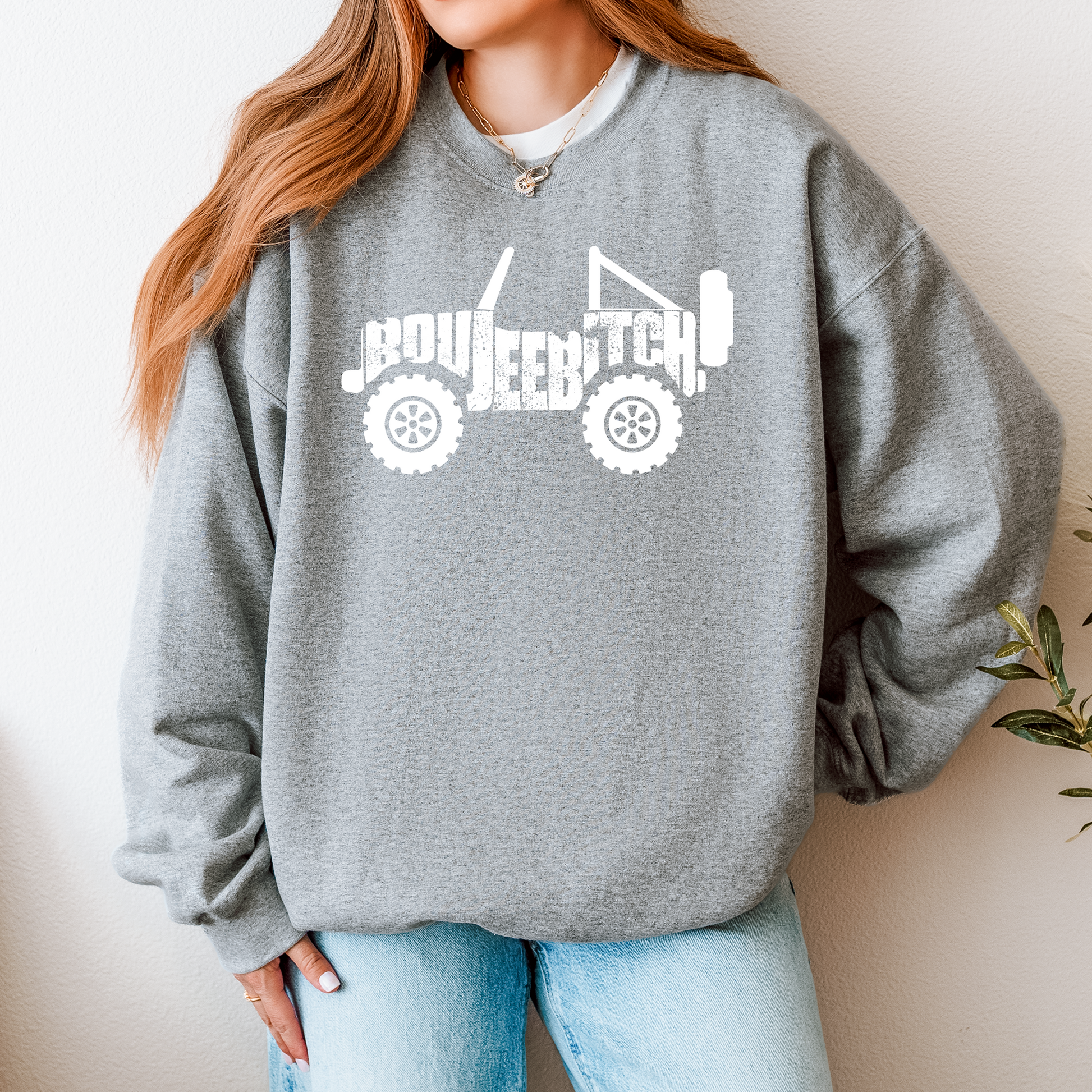 Bring a little humor to the trails with this Unisex “Boujee Bitch” off-road sweatshirt! Designed in the shape of a rugged 4x4, this playful design is perfect for anyone who enjoys a mix of off-road adventures and a boujee lifestyle. Whether you're gifting it to your favorite off-road enthusiast or keeping it for yourself, this tee is sure to be a hit for those who love the outdoors with a side of luxury.