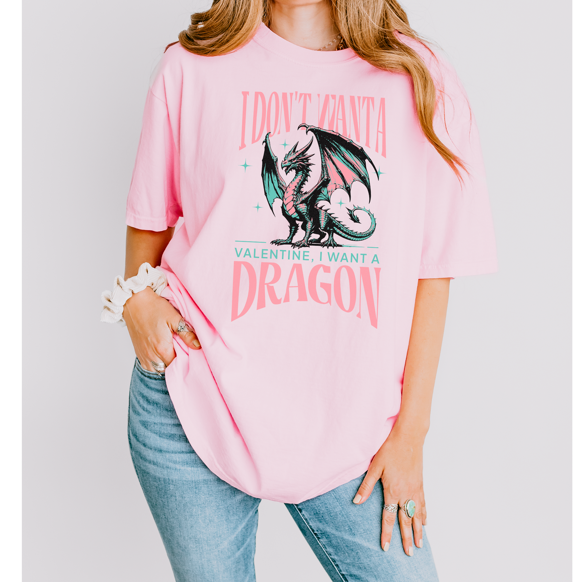 This “I Don’t Want a Valentine, I Want a Dragon” shirt is perfect for BookTok girlies, fantasy fans, and readers who live for powerful dragons, epic stories, and a little rebellion. Designed with bold lettering and a striking dragon illustration in Valentine-inspired pinks and teals, this tee blends fierce fantasy vibes with anti-Valentine humor.