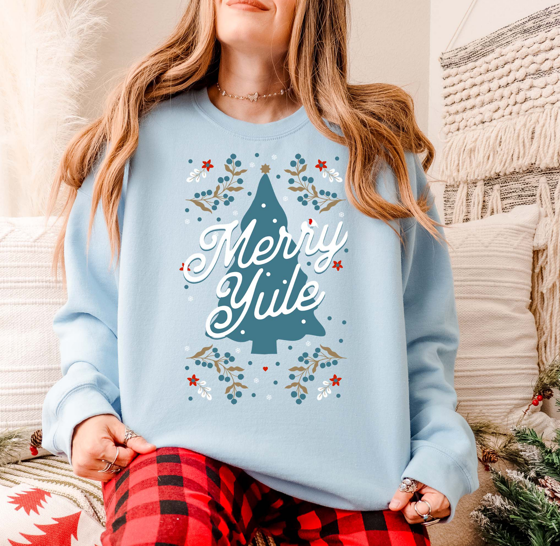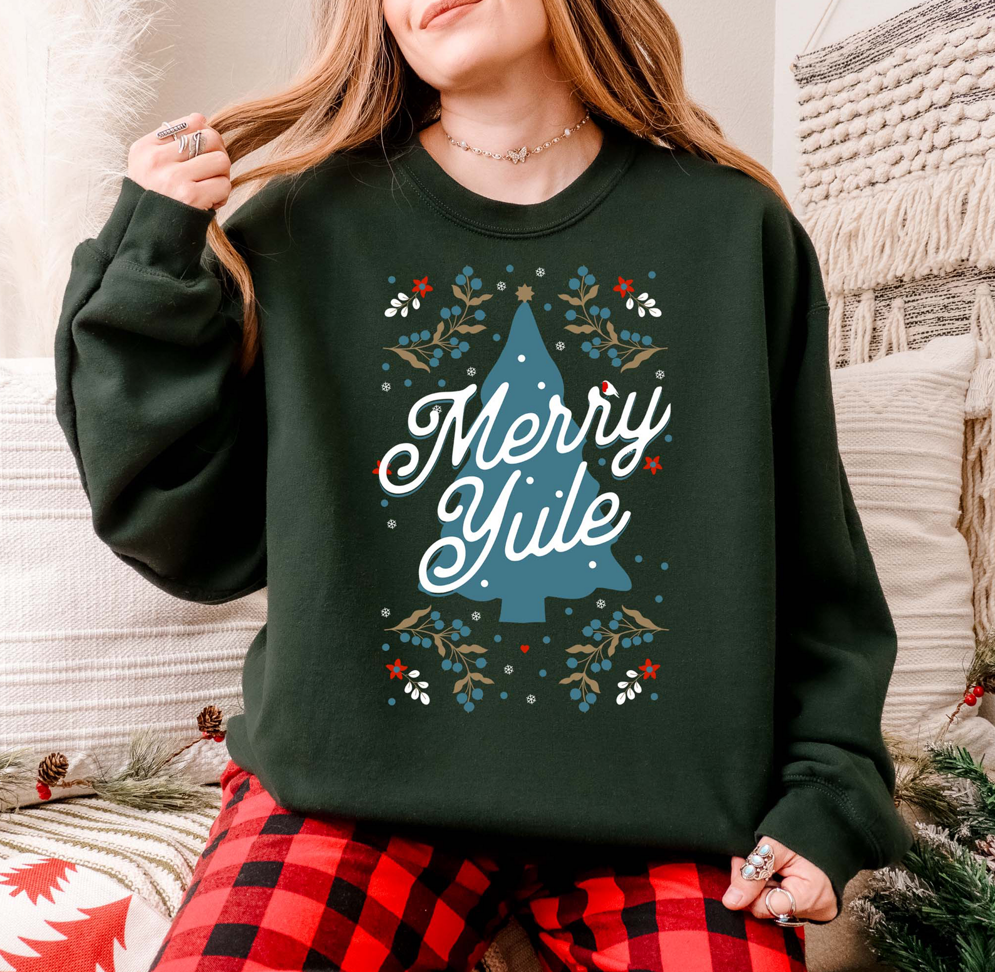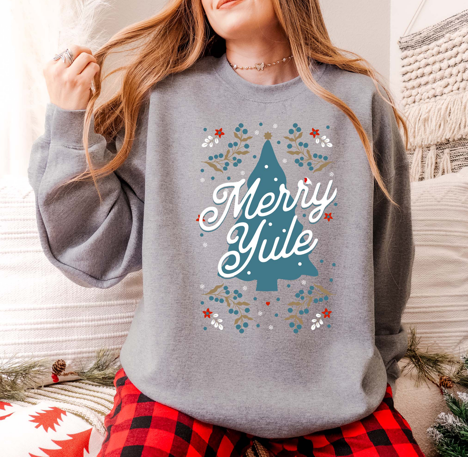 Celebrate the magic of the winter solstice with our cozy "Merry Yule" sweatshirt! Perfect for Yule, this unique design captures the warmth and spirit of the season with festive greenery and a beautiful holiday tree. Whether you’re honoring ancient traditions or simply love the idea of a more natural and spiritual winter celebration, this sweatshirt makes a meaningful addition to your holiday wardrobe.