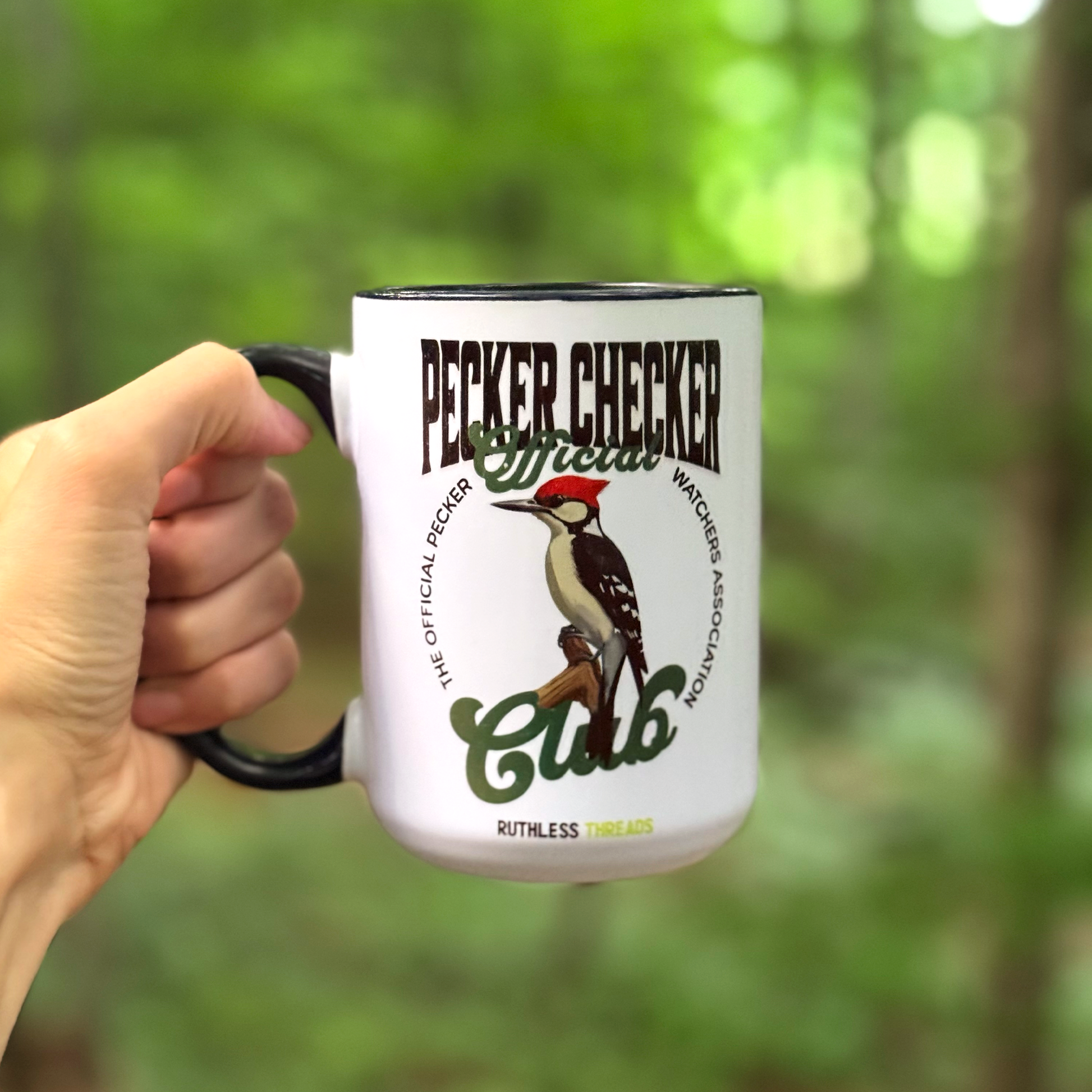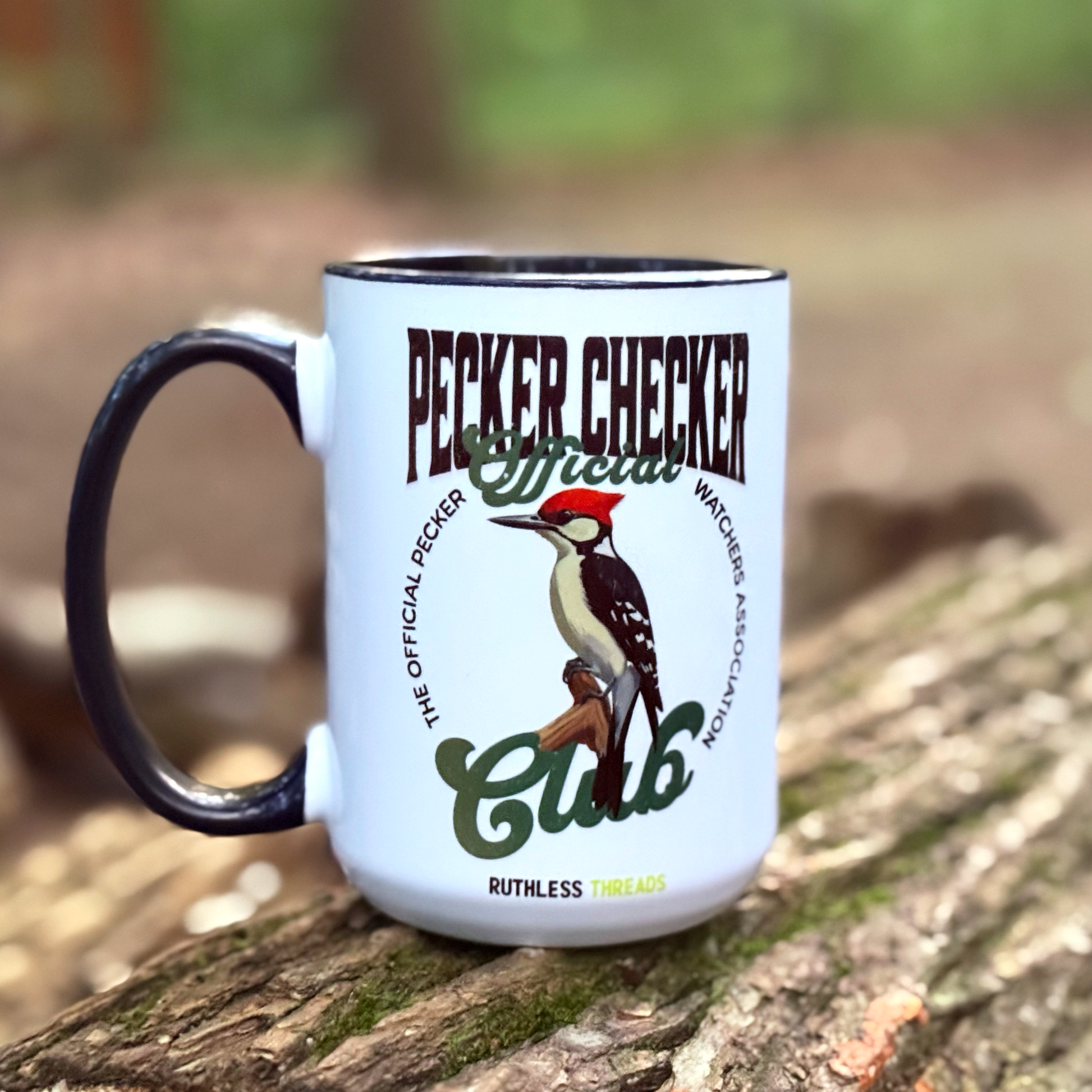Meet the "Pecker Checker Club" mug — a must-have for bird nerds, woodpecker lovers, and anyone with a wild sense of humor. Whether you're sipping coffee on your back porch or fueling up for a hike in the woods, this mug lets the world know you’re part of an elite (and hilarious) club.