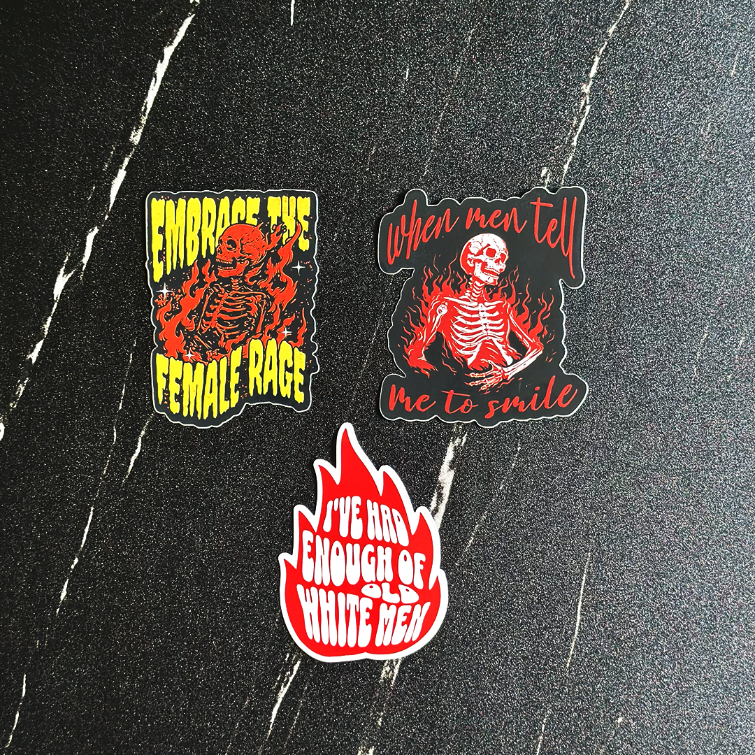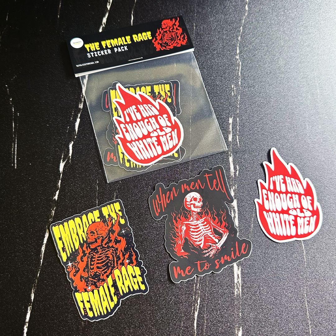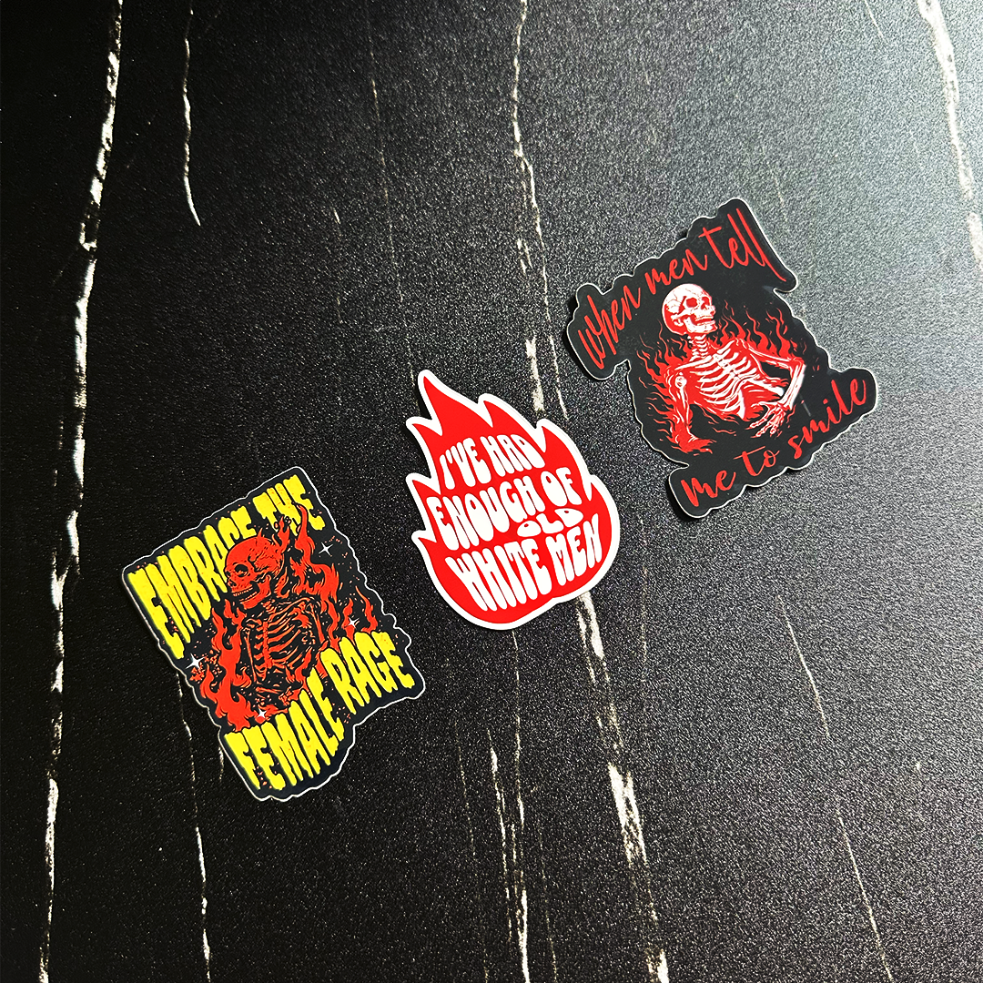 This feminist sticker pack is designed for bold women who refuse to shrink themselves. Featuring powerful, rage-inspired designs in waterproof, durable vinyl, these stickers are perfect for e-readers, laptops, journals, water bottles, and anywhere you want to shout your truth.