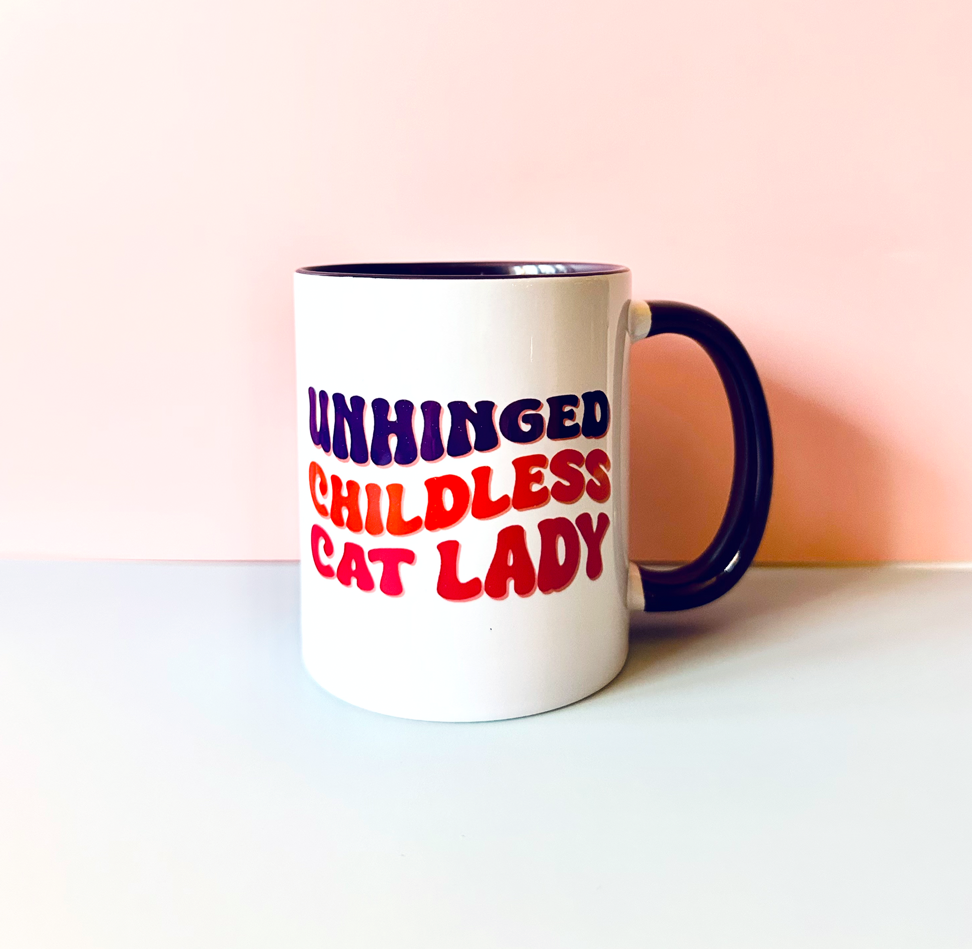 Start your mornings with a side of sass and caffeine! This “Unhinged Childless Cat Lady” mug is the perfect addition to any cat lover's collection. Designed for those who embrace their independence, adore their feline friends, and love a little humor, this mug is bold, quirky, and unapologetic—just like you.